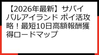 【2026年版】サバイバルアイランド ポイ活案件徹底比較!おすすめポイントサイトと賢い稼ぎ方 「サバイバルアイランド」でポイ活を始めたいけど、どのポイントサイトがお得か分からない。 そんなあなたのために、2026年最新のポイ活案件情報を徹底...