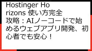 Hostinger Horizons 無料版徹底解剖:無料トライアルから始めるAIアプリ開発の第一歩 AI技術の進化により、誰もがアプリ開発に挑戦できる時代が到来しました。 Hostinger Horizonsは、その最前線を走るノーコード...