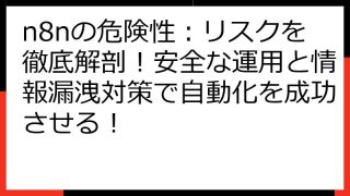 n8n無料徹底ガイド:無料で始めるAIワークフロー自動化、活用法から注意点まで AIを活用したワークフロー自動化ツール、n8n(エヌエイトエヌ)をご存知ですか? この記事では、「n8n 無料」というキーワードで情報を探しているあなたのために...