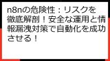 - n8n 使い方完全ガイド:ノーコード自動化で業務効率を最大化!初心者から上級者まで