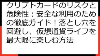 クリプトカードの使い方 完全ガイド:2024年最新情報から始める仮想通貨決済 仮想通貨の世界が広がり、クリプトカードへの注目度も高まっていますね。 この記事では、「クリプトカード 使い方」に焦点を当て、初心者の方でも安心して利用できるよう、...