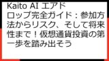 さあ、Kaito AIを使いこなし、仮想通貨情報革命の波に乗りましょう。