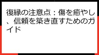 復縁の冷却期間:成功への道筋と注意点、そして再会後のアプローチ 復縁を望む気持ち、それは誰しも経験する切実な願いです。 しかし、別れたばかりの感情的な状態では、冷静な判断を下すことは難しいものです。 そこで有効なのが、復縁の冷却期間です。 ...
