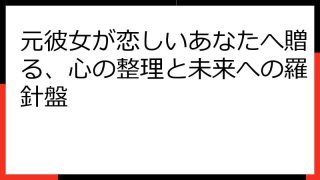 元彼女を忘れられないあなたへ贈る、心の整理と未来へのステップ この記事では、「元彼女のこと 考えてしまう」と検索したあなたのために、その原因から解決策まで、専門的な視点から解説します。 元カノへの未練、忘れられない気持ち、それらは決してあな...