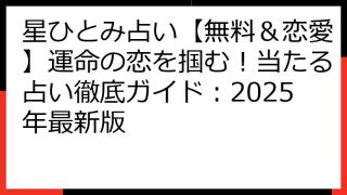 【2024年最新】星ひとみ姓名判断で毎日を輝かせる!運勢、活用法、そして気になる疑問まで徹底解剖 星ひとみさんの姓名判断は、独自の天星術と組み合わせることで、日々の運勢をより深く知ることができると評判です。 この記事では、「星ひとみ 姓名判...