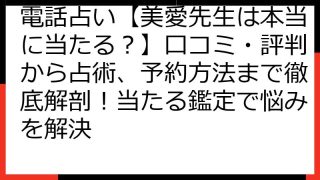 【徹底検証】如月ユイの復縁占いは本当に無料?口コミ・評判から代替案まで徹底解説 「如月ユイ 復縁 無料」というキーワードで検索されたあなたへ。 もしかしたら、今、誰にも言えない、切実な復縁の悩みを抱えているのかもしれませんね。 この記事では...