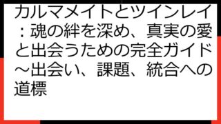 運命の人 1人目との出会い:見つけるための徹底ガイド この記事では、「運命の人 1人目」との出会いを真剣に求めているあなたのために、専門的な視点から役立つ情報を提供します。 運命の人とは何か、どうすれば出会えるのか、そして、その出会いをどの...