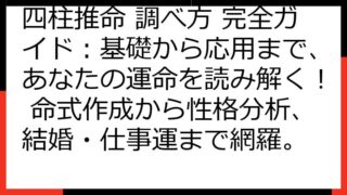 四柱推命「スタークローラー」を徹底解剖!あなたの宿命と未来を読み解く 四柱推命にご興味をお持ちのあなたへ、この記事では「スタークローラー」というキーワードに焦点を当て、その奥深い世界を紐解いていきます。 四柱推命は、生まれた年、月、日、時の...