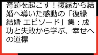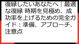 復縁 二度目の成功への道:専門家が教える、徹底分析と実践ガイド この記事では、「復縁 二度目」というキーワードで情報を求めているあなたに向けて、専門的な知識と具体的な方法論を提供します。 一度別れた相手との復縁は、容易な道のりではありません...
