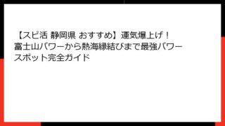 スピ活 【スピ活 静岡県 おすすめ】運気爆上げ!富士山パワーから熱海縁結びまで最強パワースポット完全ガイド