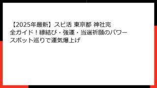 【2025年最新】スピ活 東京都 神社完全ガイド!縁結び・強運・当選祈願のパワースポット巡りで運気爆上げ