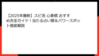 スピ活 【2025年最新】スピ活 心斎橋 おすすめ完全ガイド!当たる占い館&パワースポット徹底解説