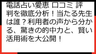 電話占い愛恵 電話占い愛恵 口コミ 評判を徹底分析!当たる先生は誰?利用者の声から分かる、驚きの的中力と、賢い活用術を大公開!