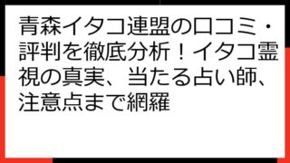 青森イタコ連盟の口コミ・評判を徹底分析!当たる占い師から注意点まで 青森イタコ連盟の電話占いサービスについて、様々な情報が飛び交っていますね。 「当たる」という声もあれば、「当たらない」という声もあり、一体どれを信じればいいのか迷ってしまう...