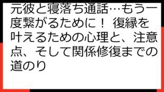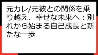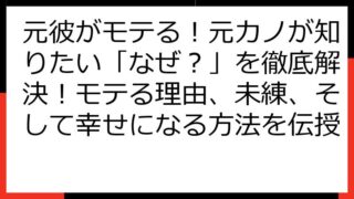 元彼がモテるのはなぜ?元カノが知りたいモテる男の秘密と、その心理を徹底解剖! この記事は、元彼がモテるという現実に直面し、様々な感情を抱いているあなたへ向けて書かれています。 「一体なぜ?」「何が違うの?」そう感じているかもしれません。 こ...