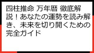 四柱推命 命式完全読解:プロが教える、あなたの運命を読み解く秘訣 四柱推命の世界へようこそ! この記事では、あなたの命式を深く理解し、人生をより豊かにするための知識とノウハウを提供します。 四柱推命は、生年月日時から個人の運勢を読み解く占術...