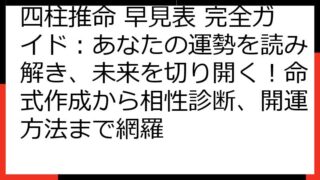 四柱推命「駅馬」徹底解説:あなたの人生を加速させる星 四柱推命の世界で、あなたの運勢を読み解く鍵となる「駅馬星」をご存知でしょうか? この記事では、駅馬星の基本から、あなたの命式における見つけ方、そして、その影響を最大限に活かす方法まで、徹...
