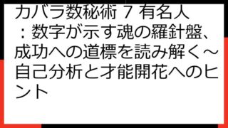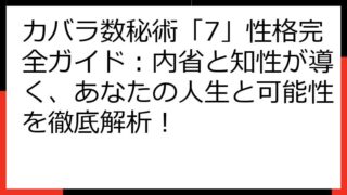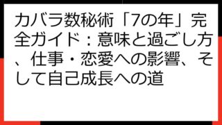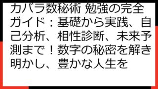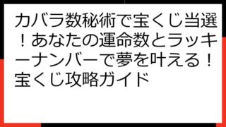 カバラ数秘術で宝くじ当選!数字の秘密を解き明かす究極ガイド カバラ数秘術は、あなたの生年月日や名前から導き出される数字を通して、運命や未来を読み解く古代からの知恵です。 このガイドでは、そのカバラ数秘術を宝くじに応用し、当選への可能性を高め...