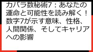 カバラ数秘術 カバラ数秘術7:あなたの運命と可能性を読み解く!数字7が示す意味、性格、人間関係、そしてキャリアへの影響