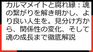 カルマメイトとの縁切り:魂の成長を促すための実践ガイド この記事では、「カルマメイト」との関係性に着目し、縁が切れる理由や、具体的な実践方法、そして縁を切った後の変化について詳しく解説します。 「カルマメイト」という言葉を聞いたことがあるけ...