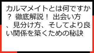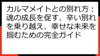 カルマメイトとの別れ:魂の成長を促すための徹底ガイド カルマメイトとの別れは、人生において大きな転換期となる出来事です。 しかし、その別れは単なる終わりではなく、魂の成長を促すための重要なプロセスでもあります。 このガイドでは、カルマメイト...