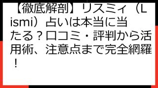 【徹底検証】リスミィ(Lismi)占いは本当に当たる?口コミ・評判から的中率の秘密まで徹底解剖! 「リスミィ(Lismi)って、本当に当たるの?」 恋愛の悩みを抱えるあなたなら、一度はそう思ったことがあるかもしれません。 数ある占いアプリの...