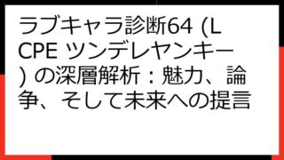 ラブキャラ診断64「LAPO パーフェクトカメレオン」徹底解析:あなたの恋愛タイプと人間関係の鍵を解き明かす 「ラブキャラ診断64」が、あなたの恋愛観を深掘りする新たな扉を開きます。 特に「LAPO パーフェクトカメレオン」というタイプは、...