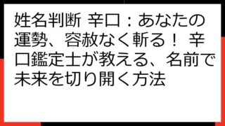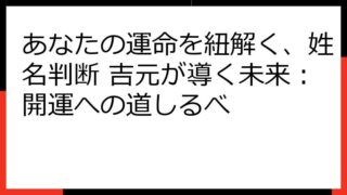 姓名判断 霊数で読み解く運命:あなたの名前が秘める力と未来 あなたは今、姓名判断における「霊数」というキーワードに興味を持ち、運命を深く知りたいと願っていることでしょう。 このブログ記事では、あなたの名前が持つ潜在的な力を、霊数という視点か...
