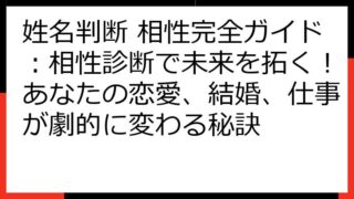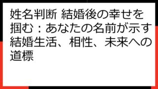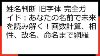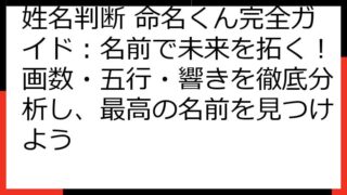 姓名判断 命名くん:理想の名前を見つけるための完全ガイド この記事では、「姓名判断 命名くん」を使って、最高の名前を見つけるためのノウハウを、徹底的に解説します。 名前は、あなた自身を表現し、人生に大きな影響を与える大切なものです。 この記...