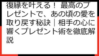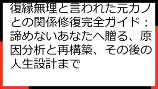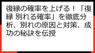 二年越しの復縁を叶える!専門家が教える成功への道標 二年越しの復縁、それはまるで長いトンネルを抜けるような、希望と不安が入り混じる道のりです。 「復縁 二年越し」というキーワードで情報を探しているあなたへ、この記事は、単なる情報提供に留まら...