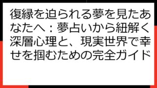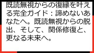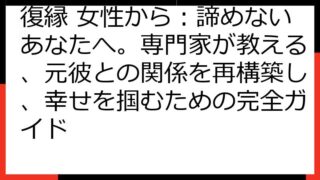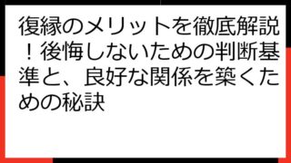 復縁のメリットを徹底解説!後悔しない選択をするために知っておくべきこと 復縁を考えているあなたへ、この記事では、復縁することの具体的なメリットを深く掘り下げて解説します。 復縁には、精神的な安定、関係性の向上、そして将来への希望といった、様...