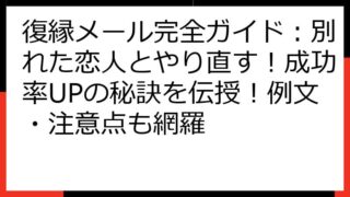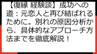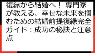 復縁への道:心を掴む言葉の戦略と実践ガイド 別れた恋人との復縁を願うあなたへ、この記事では、心を掴む言葉の選び方から、効果的なコミュニケーション戦略、そして復縁を成功させるための心構えまで、具体的な方法を詳細に解説します。 復縁への道のりは...