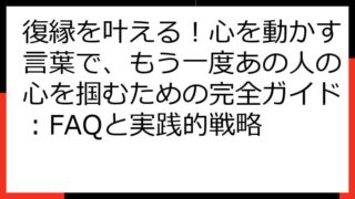 復縁 復縁を叶える!心を動かす言葉で、もう一度あの人の心を掴むための完全ガイド:FAQと実践的戦略
