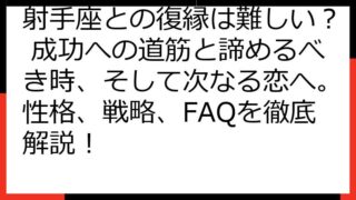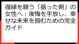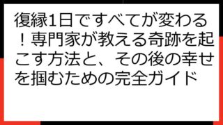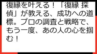 【復縁の見込みゼロ?】絶望から立ち直るための専門的ガイド 復縁を願う気持ちは、非常に辛いものです。 しかし、時には、その願いが叶わない現実と向き合わなければならないこともあります。 このガイドでは、「復縁の見込みなし」という厳しい現実を受け...