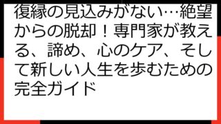 復縁 復縁の見込みがない…絶望からの脱却!専門家が教える、諦め、心のケア、そして新しい人生を歩むための完全ガイド