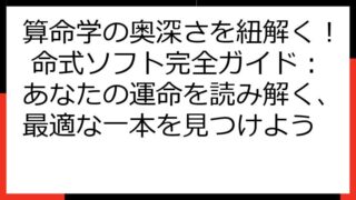 算命学 命式 ソフト 完全ガイド:あなたに最適な一本を見つけよう! この記事では、算命学の命式ソフト選びで迷っているあなたのために、役立つ情報を提供します。 さまざまなソフトの特徴、機能、料金体系を徹底比較し、あなたのニーズに合った最適な一...