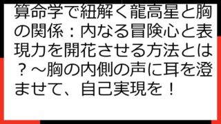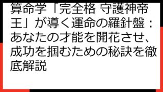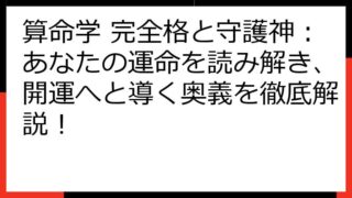 【算命学 完全格 一覧】あなたの宿命を読み解く!12の完全格と開運ポイントを徹底解説 この記事では、算命学における「完全格」について、詳細に解説していきます。 完全格とは、あなたの宿命を深く理解し、人生をより豊かにするための強力な手がかりで...