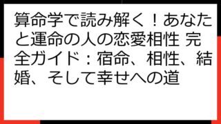 算命学で紐解く「両手に花」: 魅力と試練、幸福への道標 算命学の世界では、「両手に花」という言葉は、豊かな才能と多くのチャンスに恵まれた人を表す象徴として用いられます。 この記事では、「両手に花」というキーワードを深く掘り下げ、算命学の視点...