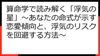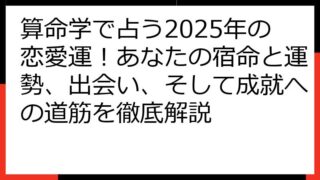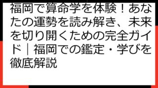 算命学5行完全ガイド:あなた自身の五行バランスを読み解き、運命を切り開く 算命学の世界へようこそ! この記事では、算命学における五行(木火土金水)の概念を深く掘り下げ、あなたの運命を読み解くための具体的な方法を解説します。 五行の基礎から、...