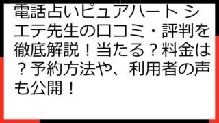 【2025年最新】ピュアハート シエテ先生の予約・料金・支払い完全ガイド:当たる霊視鑑定を体験! この記事では、電話占いピュアハートで人気のシエテ先生の霊視鑑定を受けるために必要な、予約方法、料金体系、支払い方法について、詳しく解説します。...
