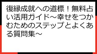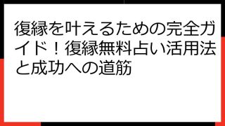 復縁成就への道標:占いを通して読み解く、彼の本心と復縁の可能性 失恋の苦しみ、そして復縁への強い願い…。 あなたは今、彼の気持ちを知りたくて、もどかしい気持ちを抱えているのではないでしょうか。 このブログ記事では、占いを活用して彼の本心を読...