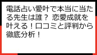 電話占い愛叶 口コミ 評判を徹底分析!当たる先生から利用者の声まで完全ガイド 電話占い愛叶は、恋愛の悩みを解決したいと願うあなたにとって、頼りになる存在かもしれません。 しかし、実際に利用する前に、本当に当たるのか、どんな先生がいるのか、料...