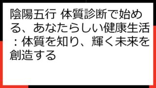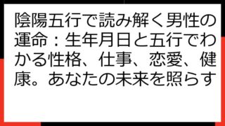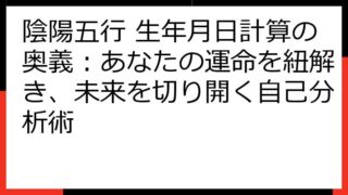 陰陽五行で読み解く!あなたの性格と隠れた才能 陰陽五行の考え方を用いて、あなたの性格を深く掘り下げていきましょう。 この記事では、五行(木火土金水)が示すあなたの本質、そして陰陽のバランスがあなたの性格にどのように影響するのかを解説します。...