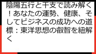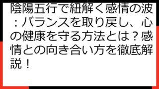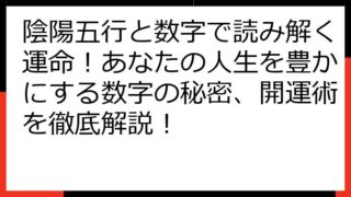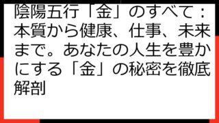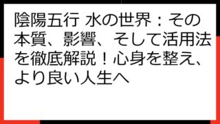 【陰陽五行・生年月日相性】運命を読み解く秘術:あなたの個性と相性を徹底解説 陰陽五行と生年月日は、あなたの運命を読み解くための奥深い羅針盤です。 この記事では、あなた自身の本質から、人間関係、そして運勢を切り開くための具体的な方法まで、幅広...