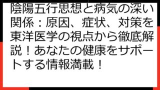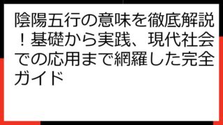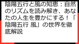 陰陽五行と風水:理想の空間を創る奥義 陰陽五行と風水は、古くから伝わる東洋思想に基づき、私たちの生活空間をより良くするための知恵です。 この記事では、陰陽五行の基本的な考え方から、風水における具体的な実践方法までを詳しく解説します。 あなた...