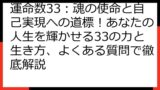 - マスターナンバー33:無条件の愛、献身、人類への奉仕を表します。