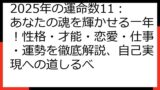 - マスターナンバー11:直感力、インスピレーション、スピリチュアルな覚醒を表します。