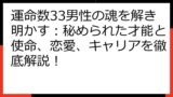 この記事では、運命数33の相性に焦点を当て、その本質と具体的な関係性、そしてより良い関係を築くための秘訣を解説します。
