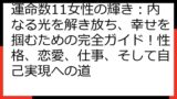 人道的精神を持ち、社会貢献に関心があります。 - **運命数11**: 直感力に優れ、カリスマ性があります。