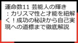 彼らにとって、精神的な成長は、人生における最も重要な目的の一つです。 - 表現活動と精神性の統合: 運命数11は、クリエイティブな活動と、精神的な探求を、互いに補完しあいながら、人生を豊かにしていきます。